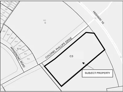 The subject property is municipally known as 305 Colonel Phillips Drive and is legally described as Block 244, Plan 7M56, Town of Shelburne, County of Dufferin. The property is designated as Community Commercial in the Town of Shelburne Official Plan and is zoned Service Commercial (C3) in the Zoning By-law. The accompanying map illustrates the location of the land subject to the proposed zoning amendment.