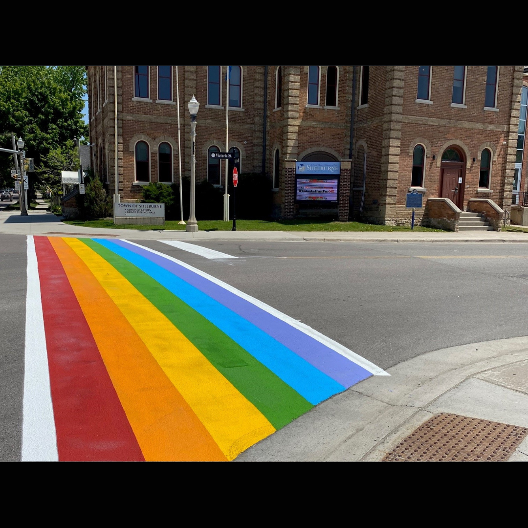 Since 2022 the Town of Shelburne has three painted Crosswalks in the downtown area. The Lest We Forget Crosswalk, The Every Child Matters Crosswalk and The Pride Crosswalk.