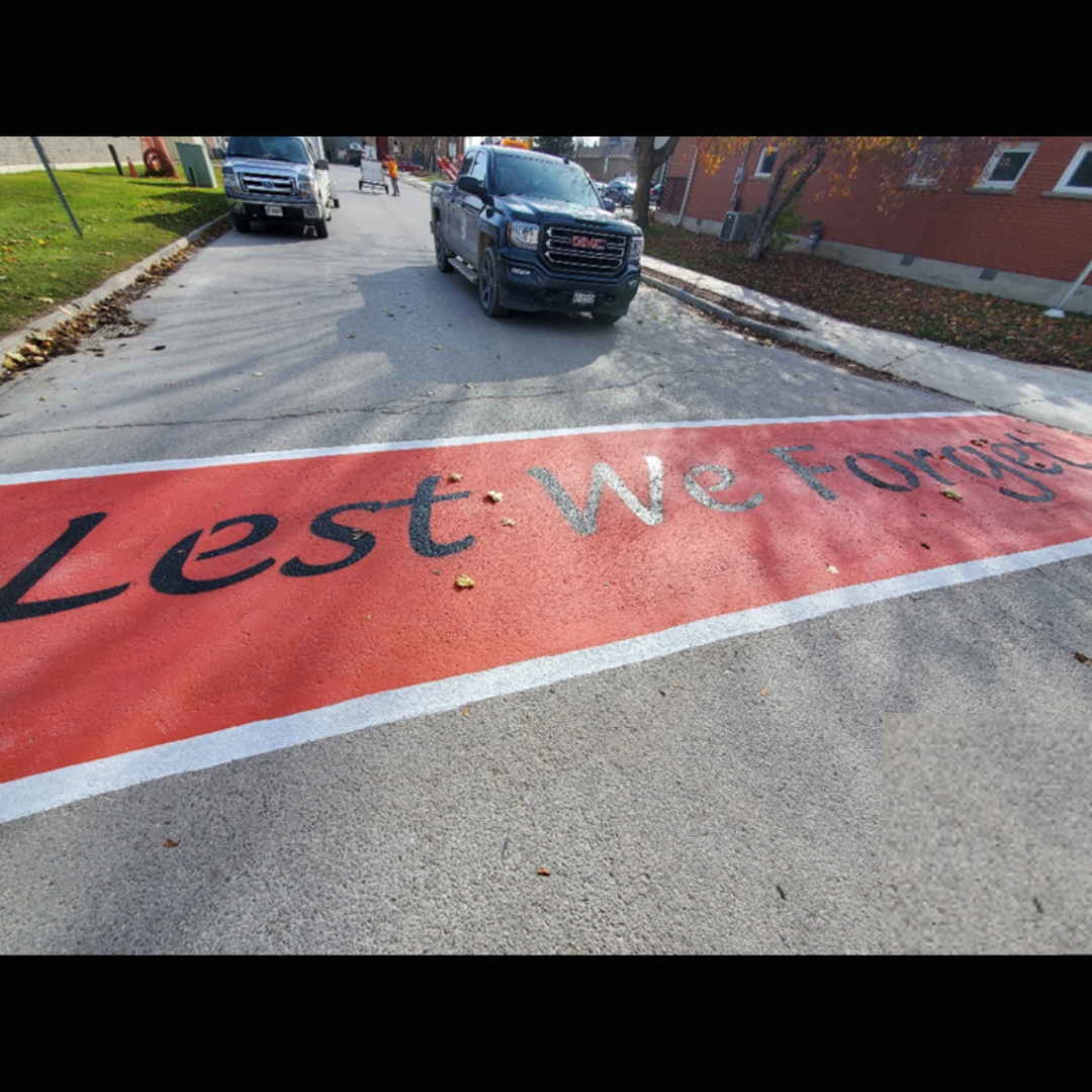On July 24, 2023 through staff report CAO 2023-16 Additional Crosswalk Locations: Interim Every Child Matters, and Lest We Forget The Town of Shelburne Council approved the location of the Lest We Forget Crosswalk. The crosswalk is located at the intersection of William Street and First Avenue.